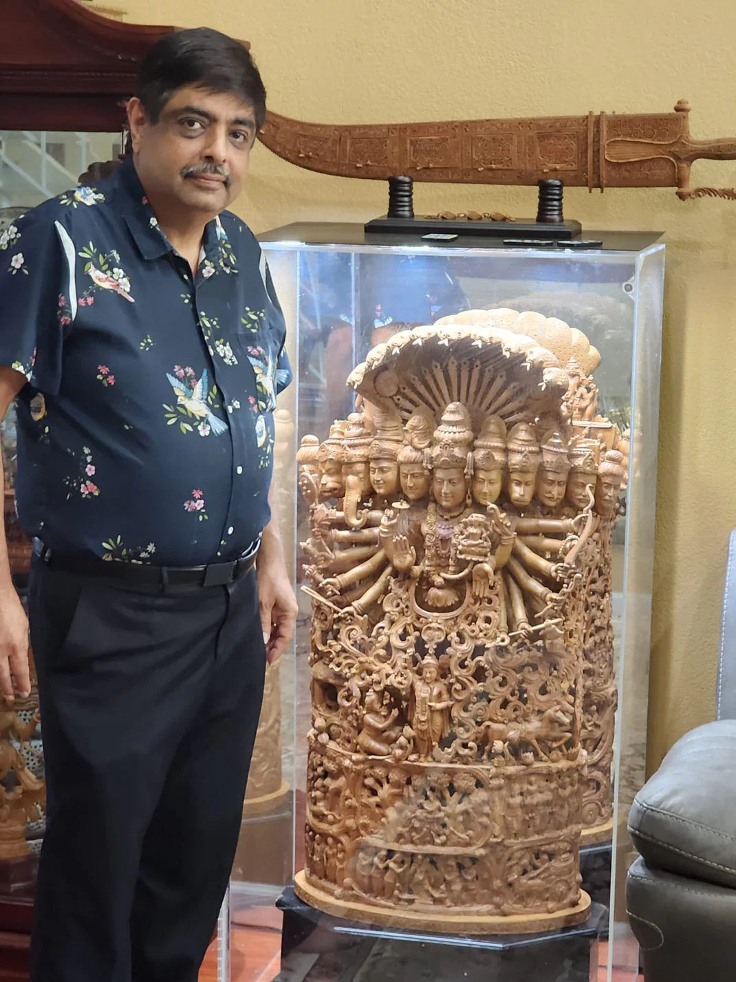 Mr. Sandeep Gupta , the CEO of Jakson Group, a prominent corporation, greatly admires the impressive work of Mohit. Their relationship has flourished through regular communication, leading to a strong friendship and a deep connection. Mr. Sandeep particularly appreciates the exquisite craftsmanship of Mohit's sandalwood carvings and eagerly anticipates each new captivating piece.
