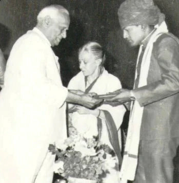 Sh. Chothmal Jangid, a distinguished artisan, was awarded the National Award in 1973 for his Sword, which beautifully depicted scenes from the life of Maharana Pratap Singh. He is the proud father of four sons, namely Vinod, Mahesh, Sitaram, and Pawan Jangid, all of whom have continued the family's legacy and are now raising the fourth generation of Jangids. At the age of 75, Chothmal Ji Jangid is still passionately carving and honing his craft, setting an inspiring example for generations to come.
